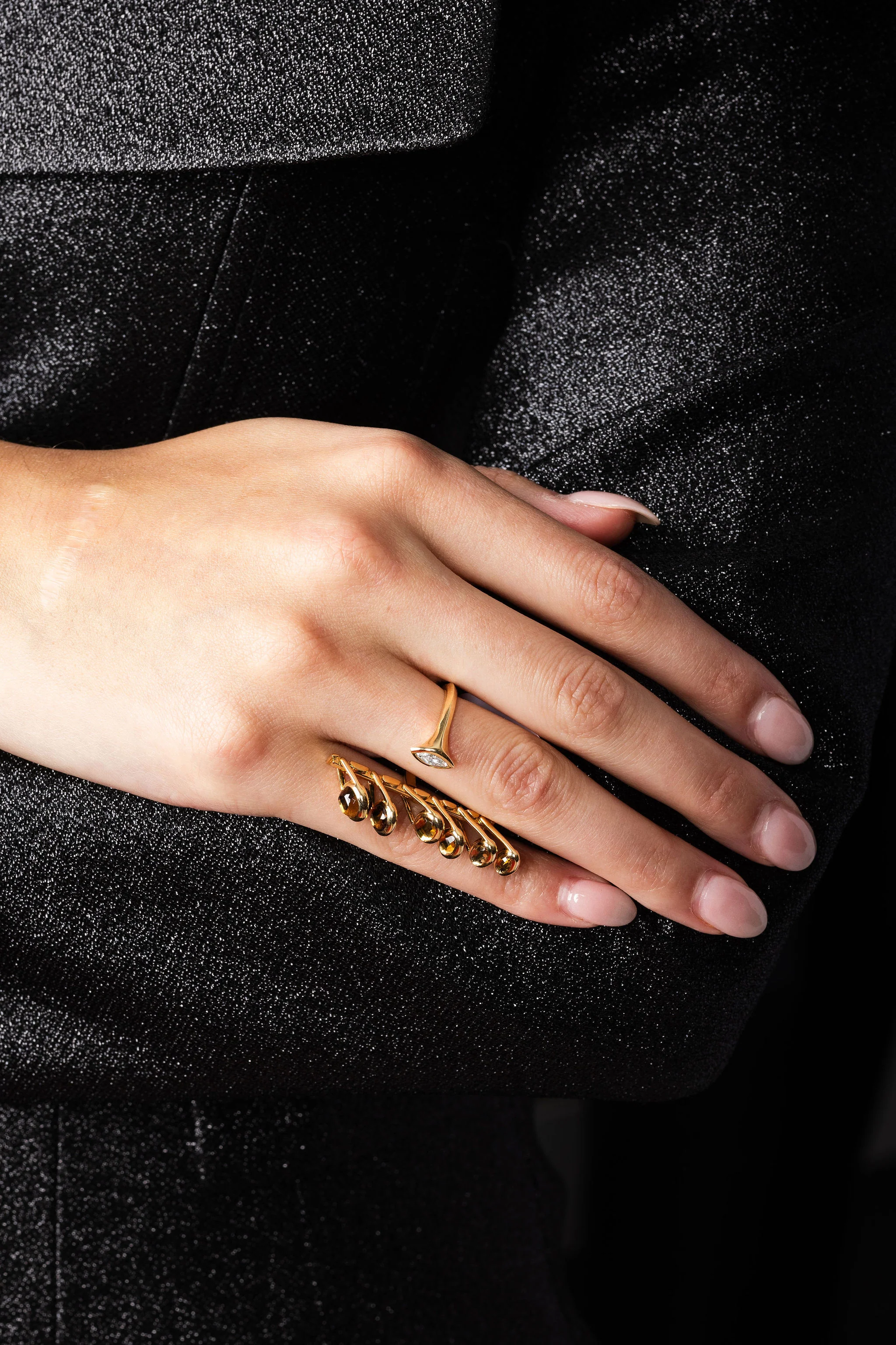 Introducing the Dancing Open Ring, a delicate and elegant piece crafted in 18k yellow gold. With each movement of your hand, the purple side effortlessly reverses, revealing varying shades of green. Embrace the beauty and versatility of this stunning ring, perfect for any occasion.