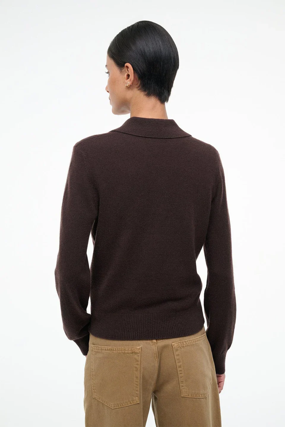 Staud's latest cashmere sweater silhouette, the Gemma is a classic-fit sweater with a front button placket, a collar, and a ribbed cuff at the sleeves.