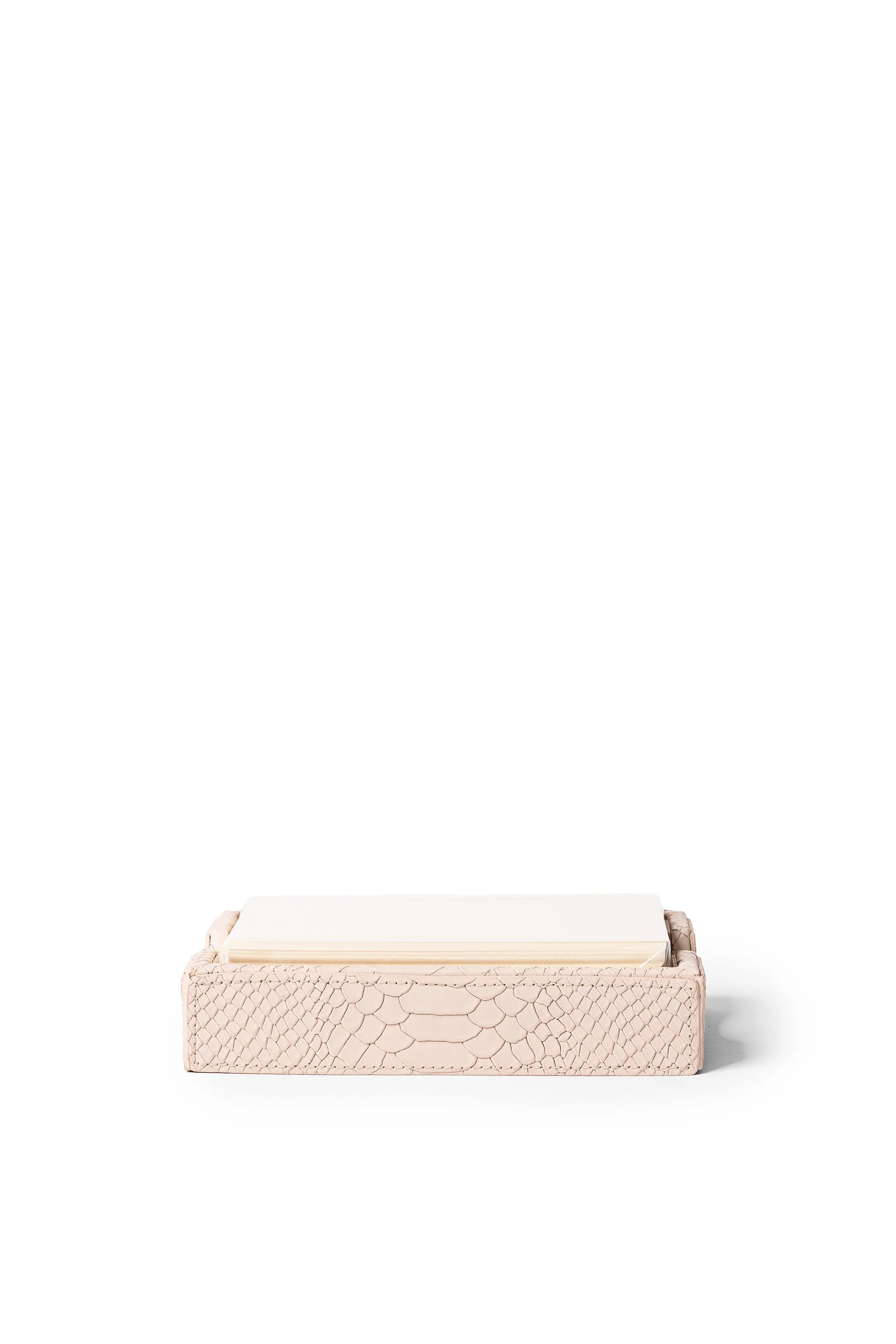 Elevate your stationary game with the "Girls Want Dinner Parties Nude Hayden Memo Tray. This sophisticated tray, crafted from premium nude bonded leather, comes with a set of 100 cards, perfect for jotting down notes and thoughts. Its sleek design fits 4x6 notecards, making it a functional and elegant addition to any desk or workspace.