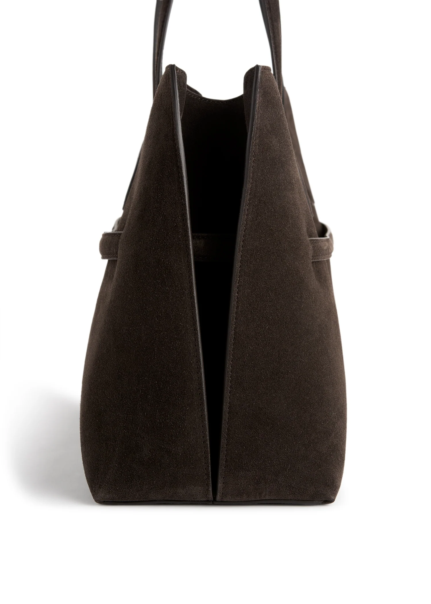 Italian suede tote with an expandable interior clasp for versatile everyday use and travel. Effortlessly sophisticated and practical.